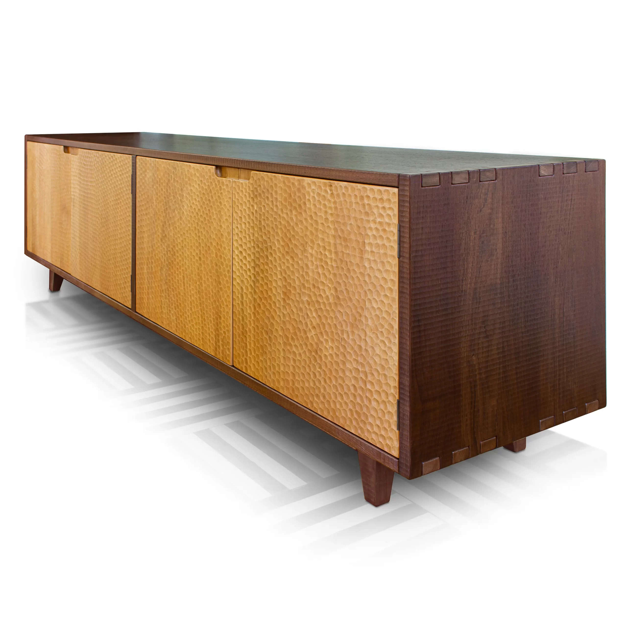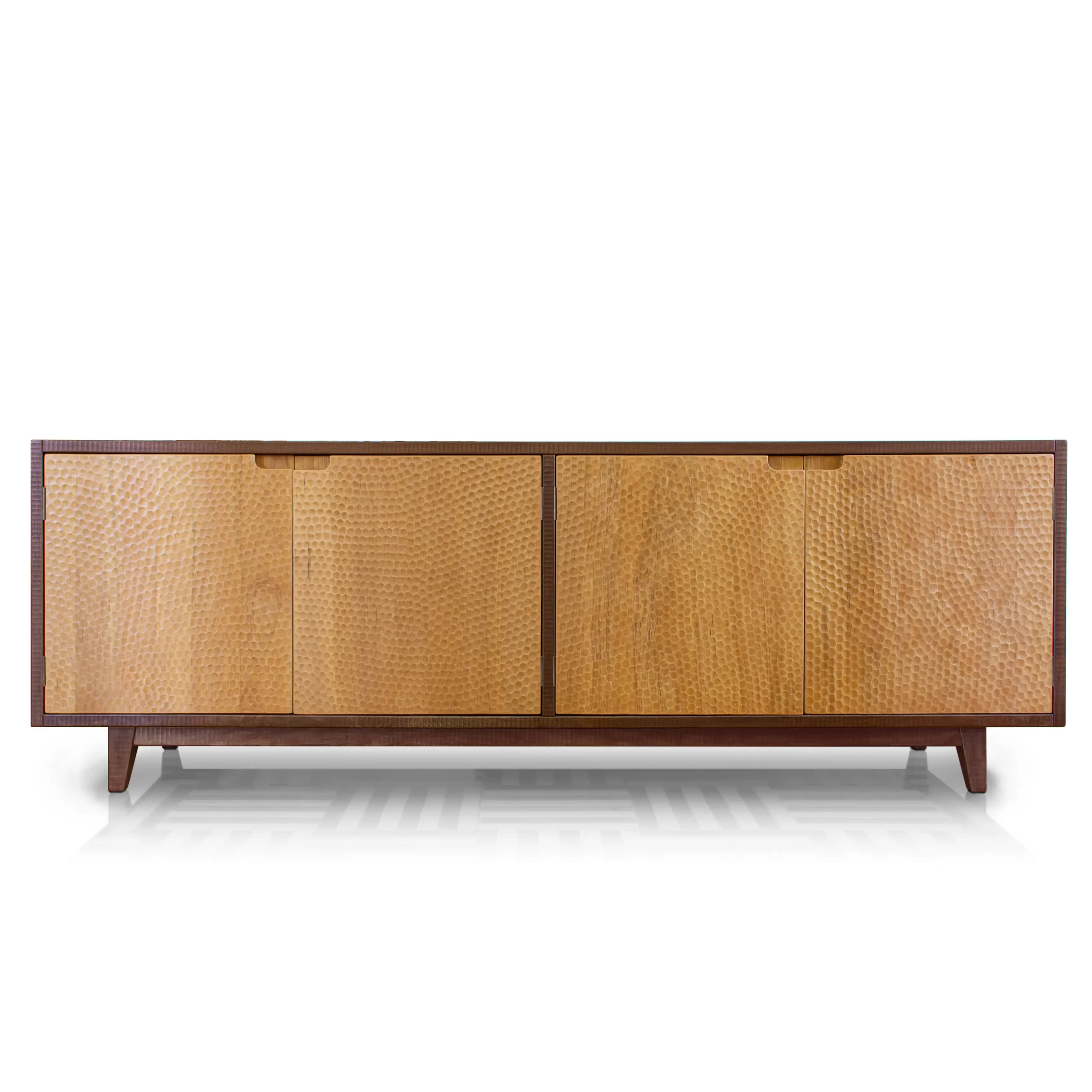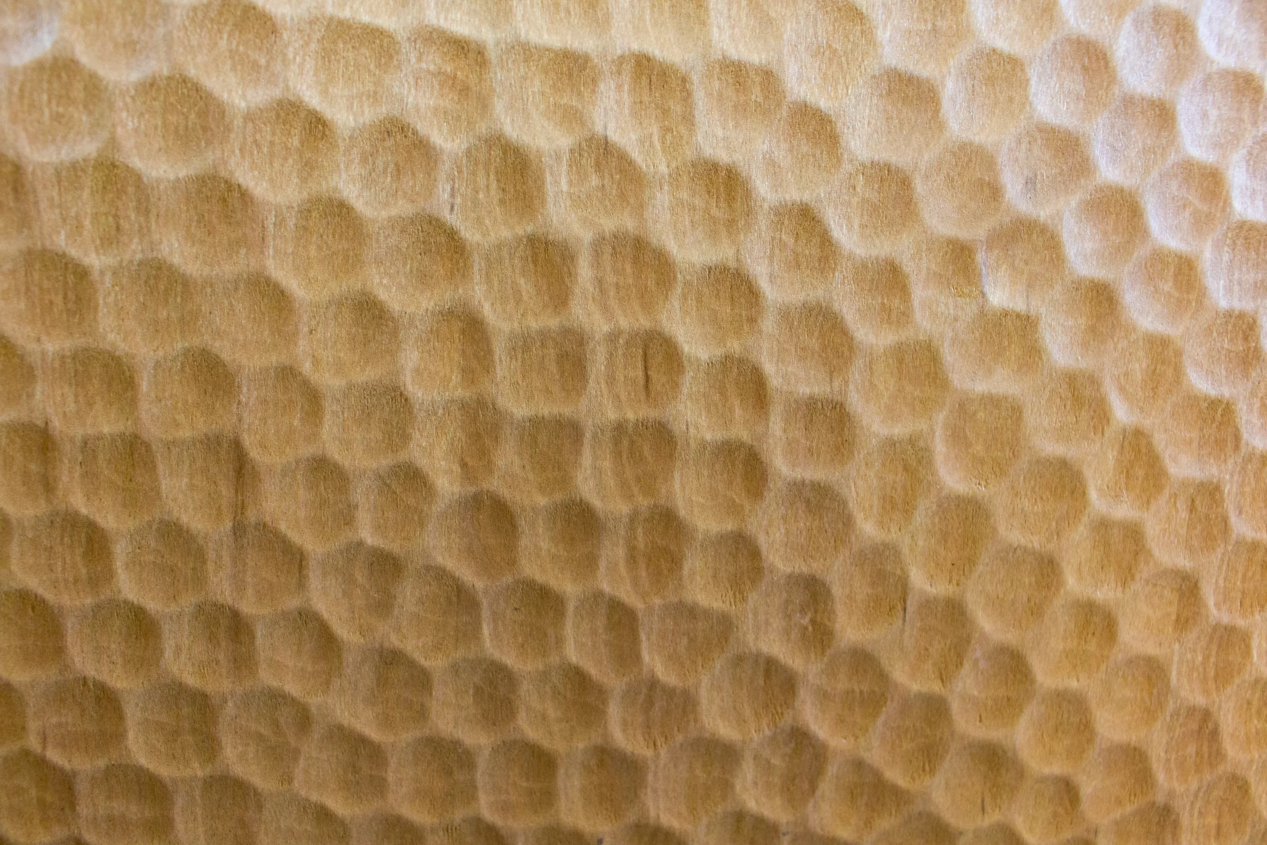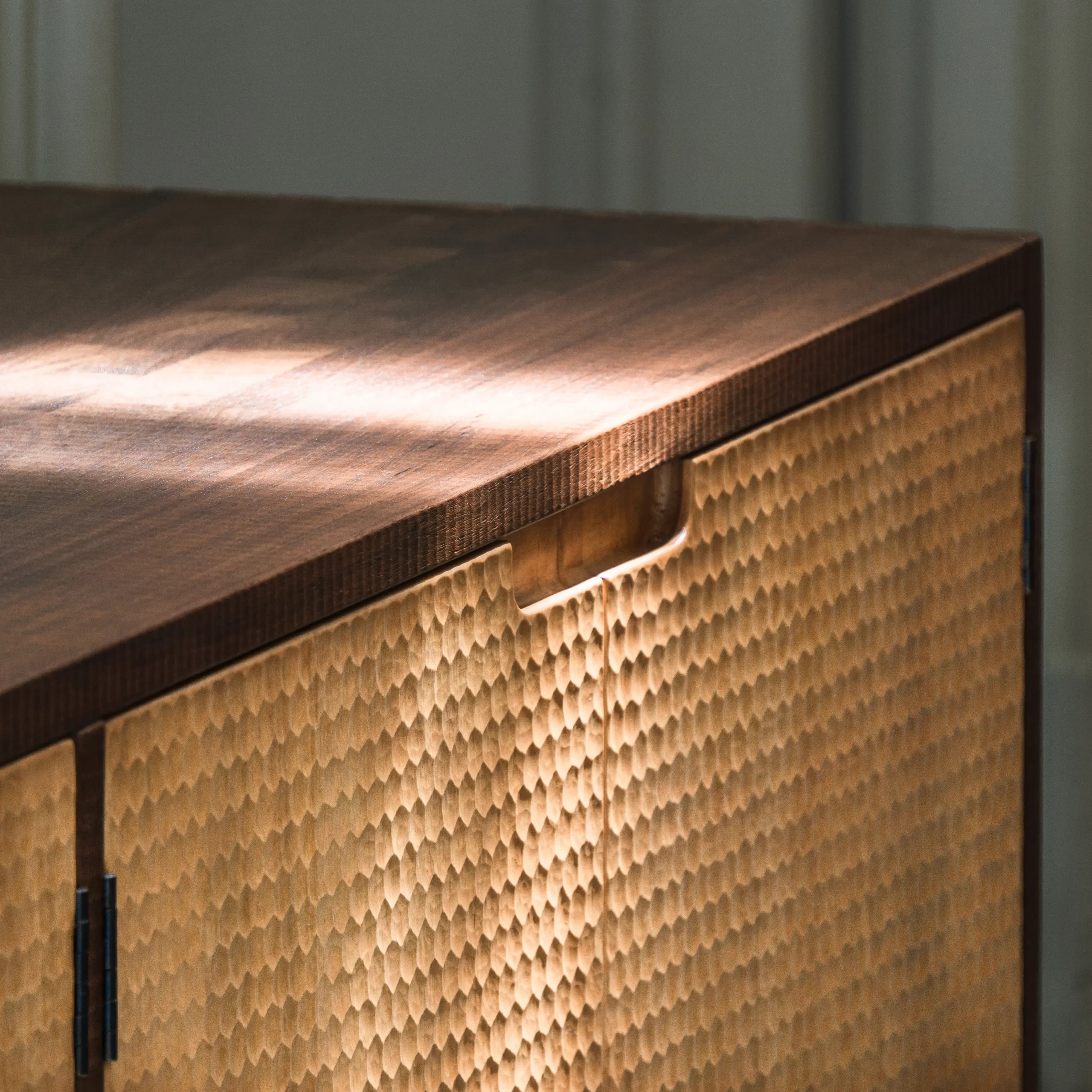 La firma de Artesanos Don Bosco: Escanaladuras talladas a mano en madera, creando un efecto ondulado único.