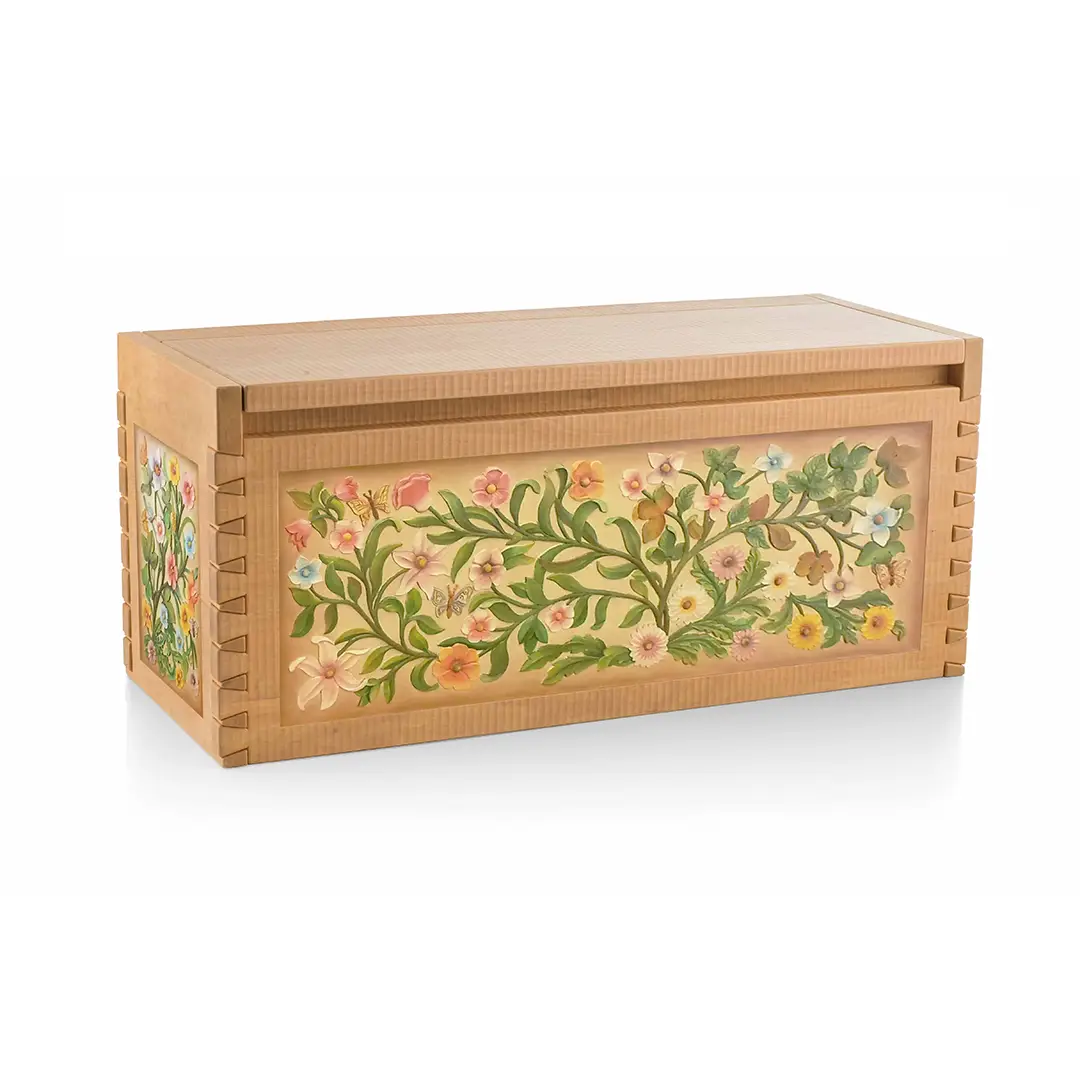 La firma de Artesanos Don Bosco: Escanaladuras talladas a mano en madera, creando un efecto ondulado único.