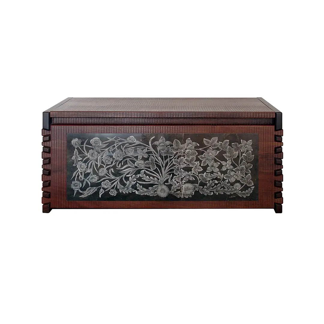 La firma de Artesanos Don Bosco: Escanaladuras talladas a mano en madera, creando un efecto ondulado único.