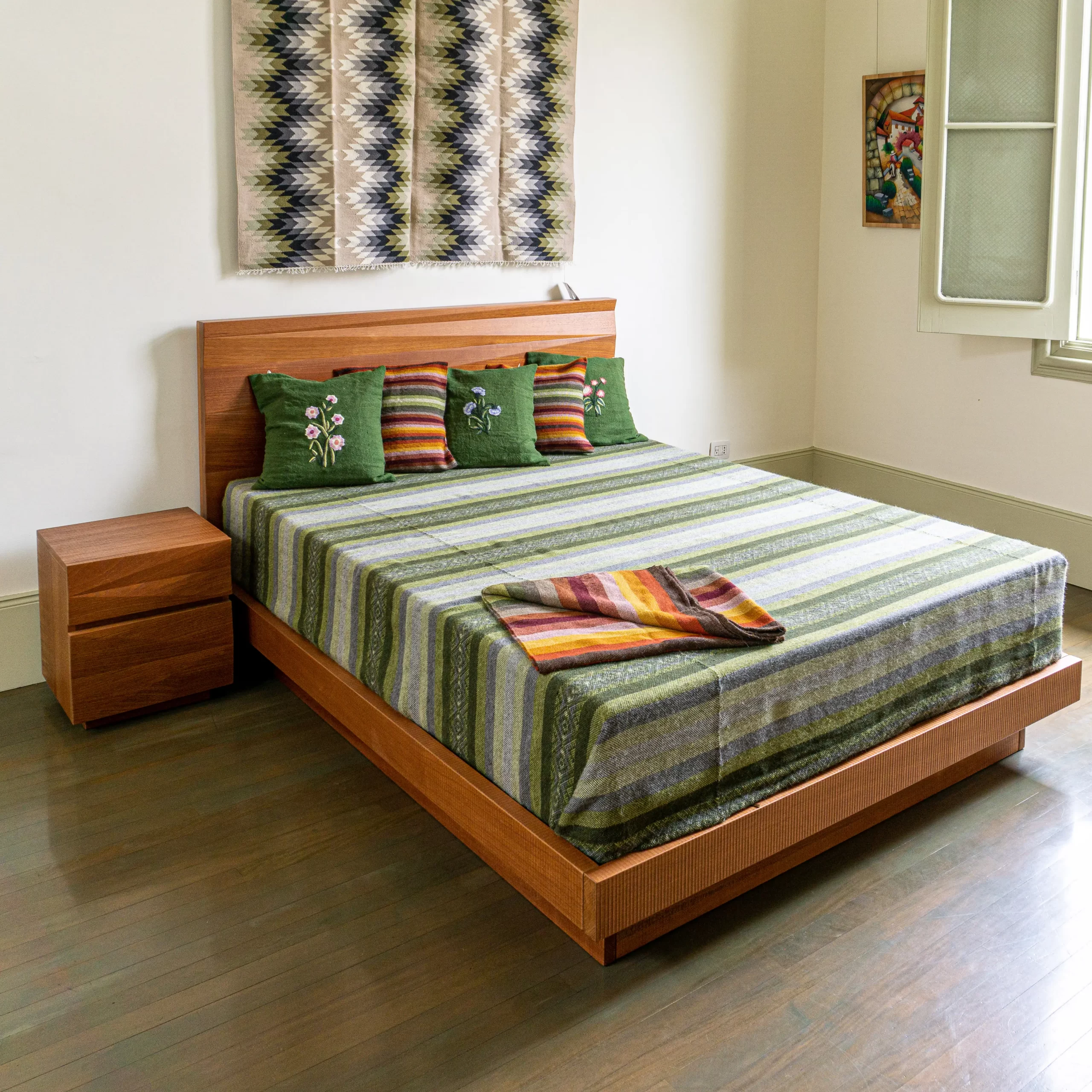 La firma de Artesanos Don Bosco: Escanaladuras talladas a mano en madera, creando un efecto ondulado único.
