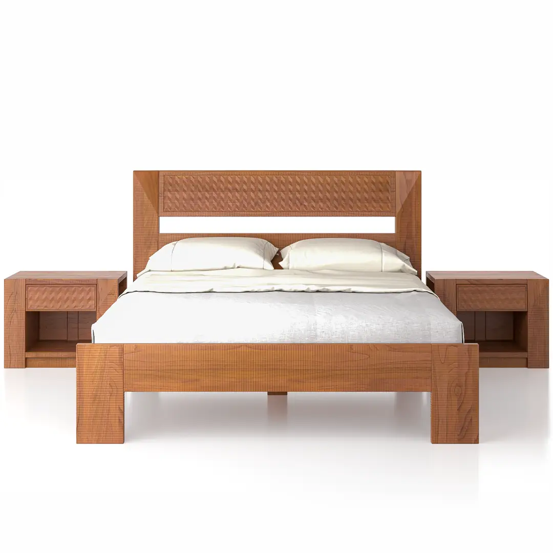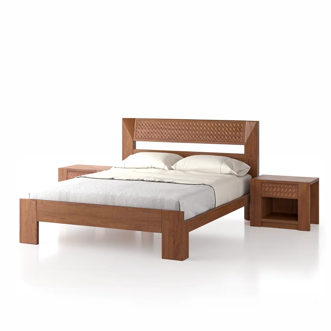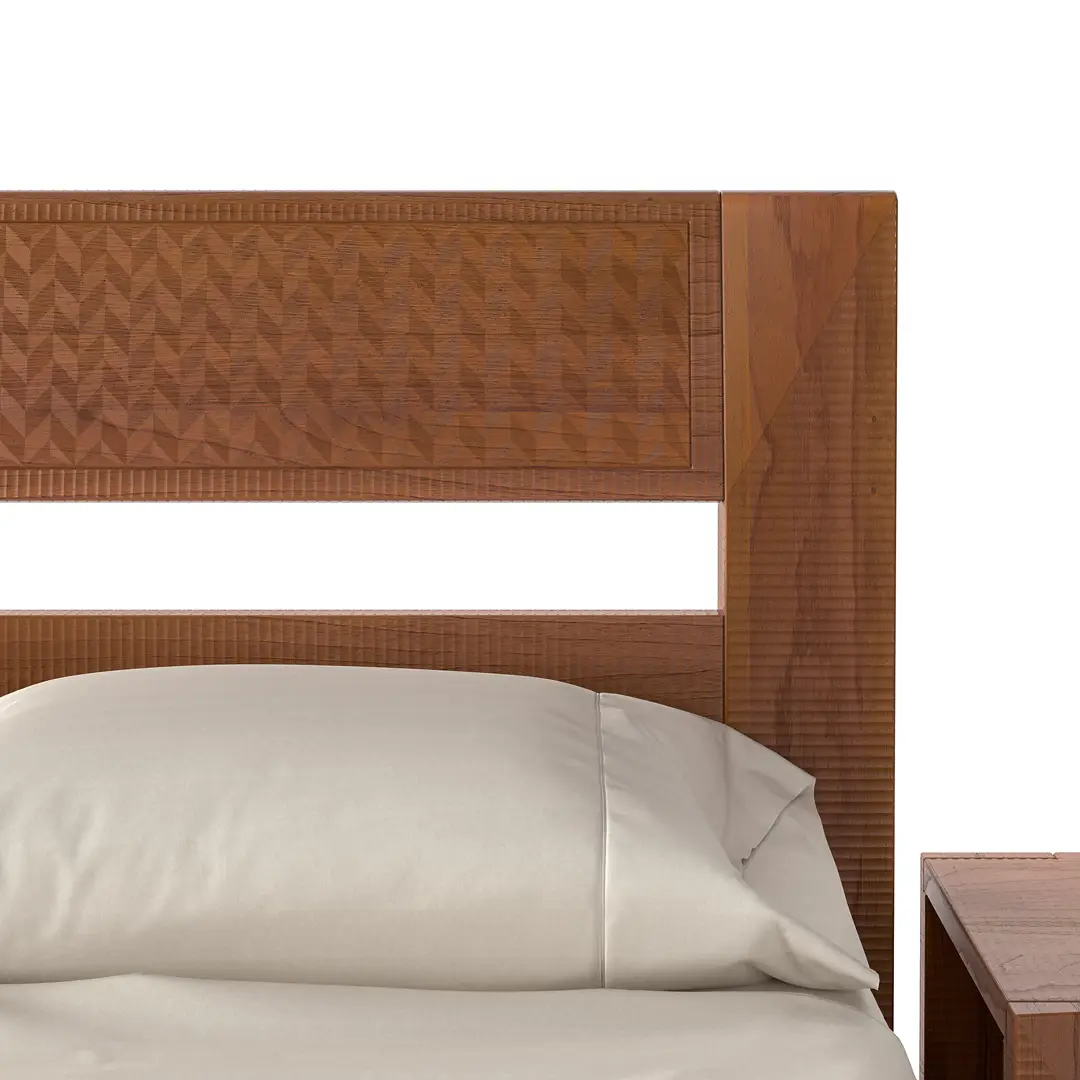La firma de Artesanos Don Bosco: Escanaladuras talladas a mano en madera, creando un efecto ondulado único.