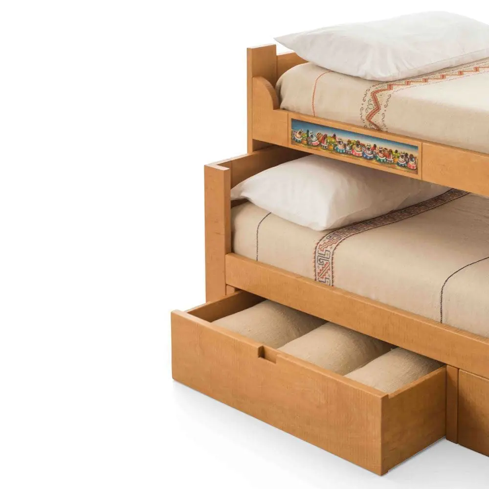 La firma de Artesanos Don Bosco: Escanaladuras talladas a mano en madera, creando un efecto ondulado único.