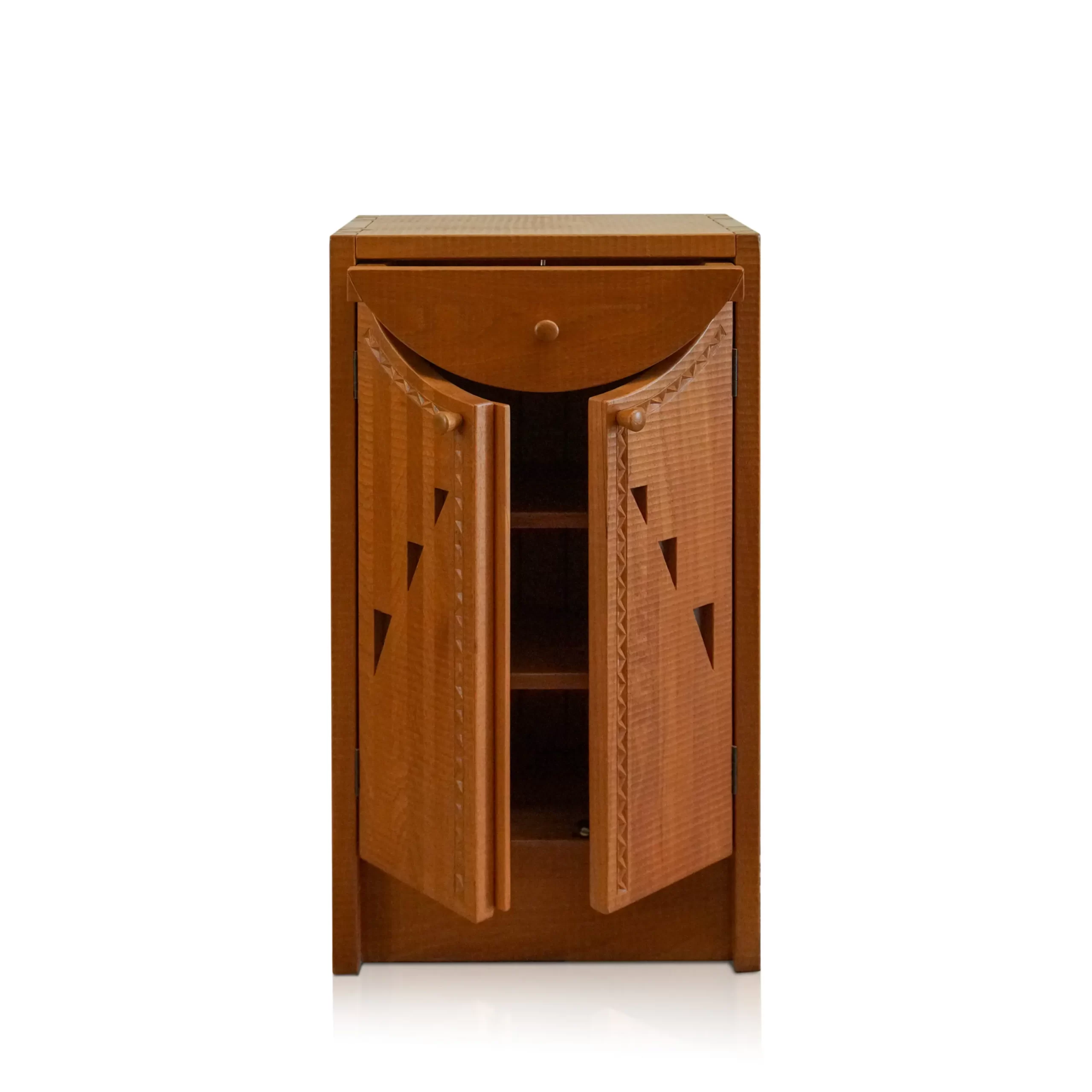La firma de Artesanos Don Bosco: Escanaladuras talladas a mano en madera, creando un efecto ondulado único.
