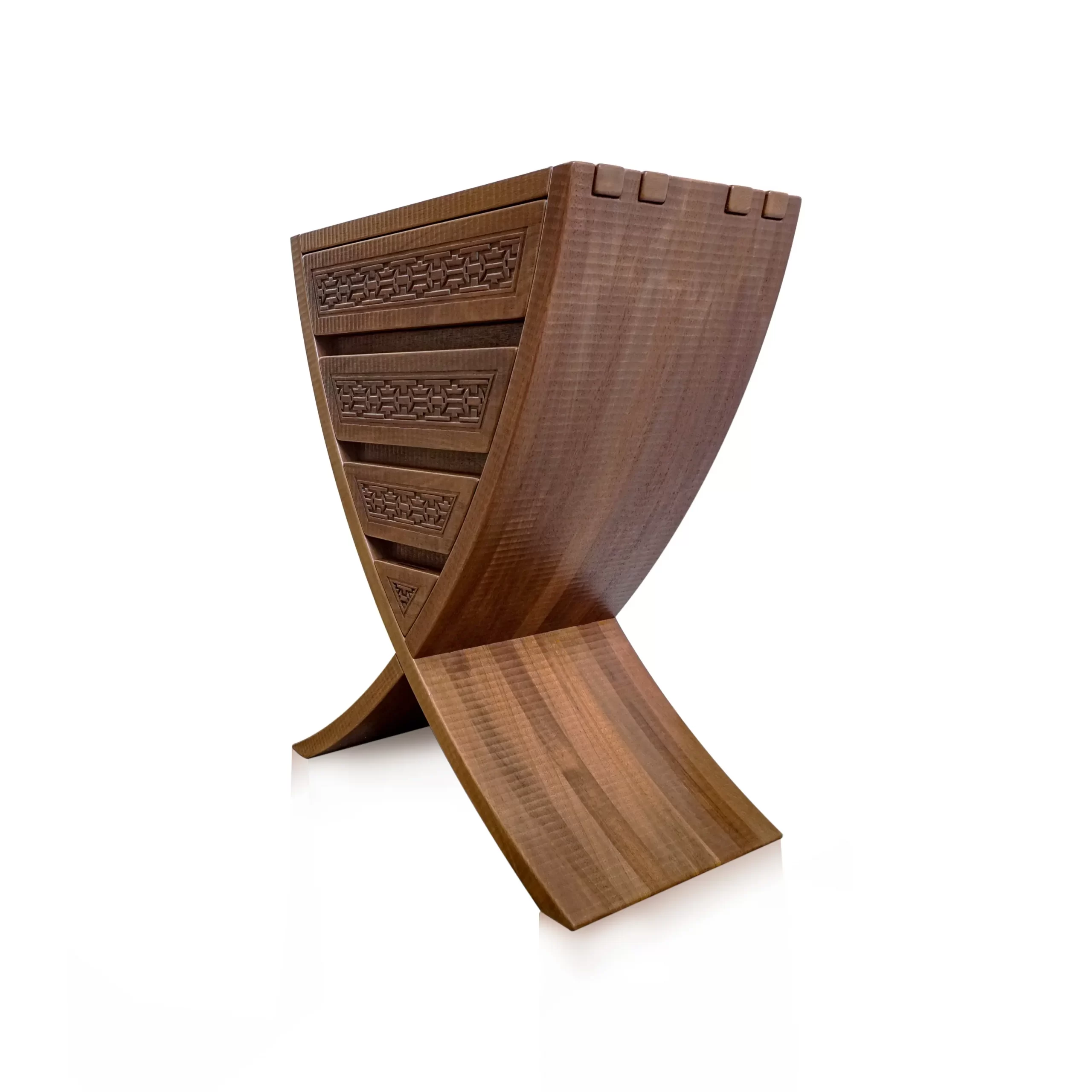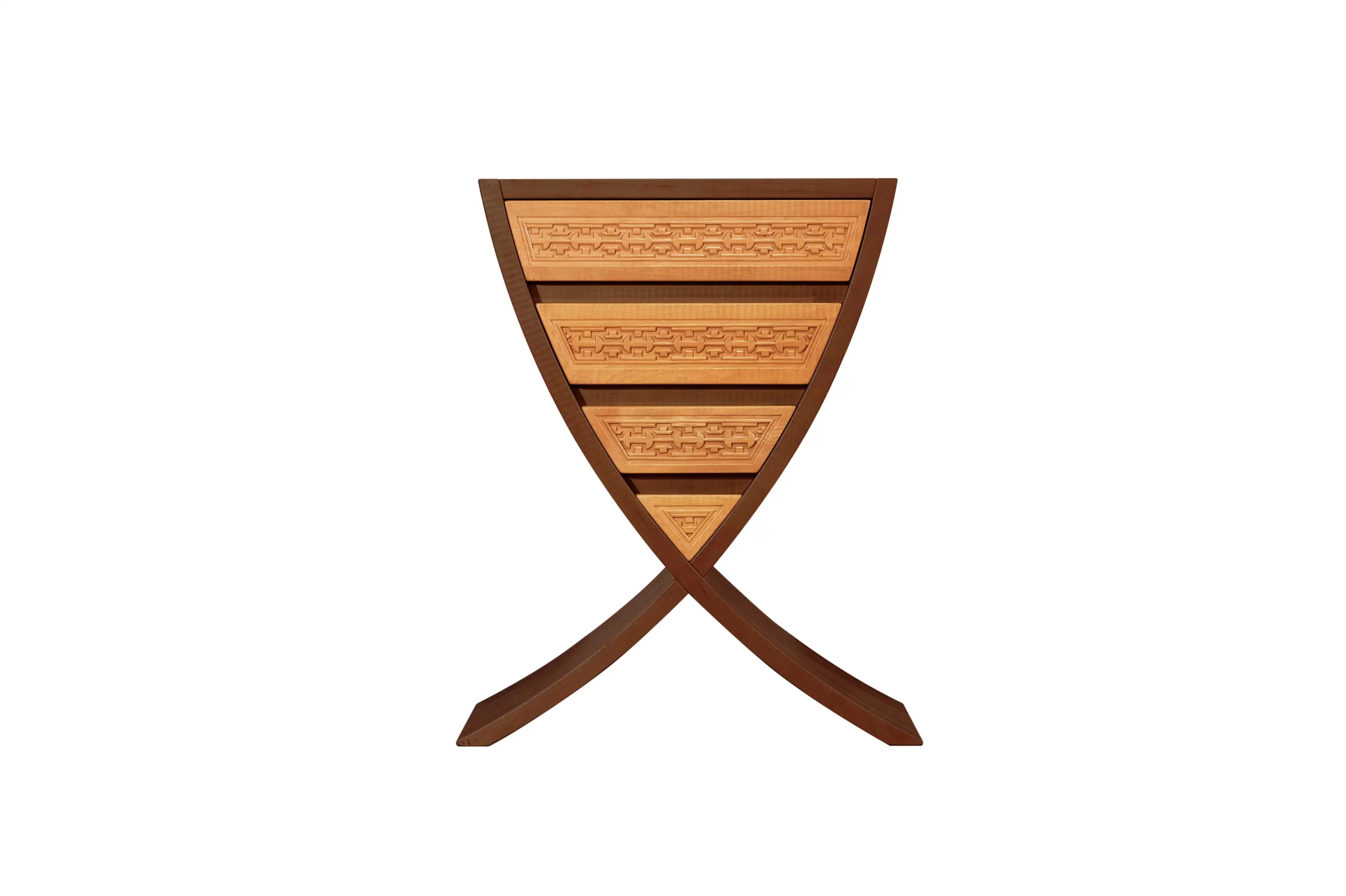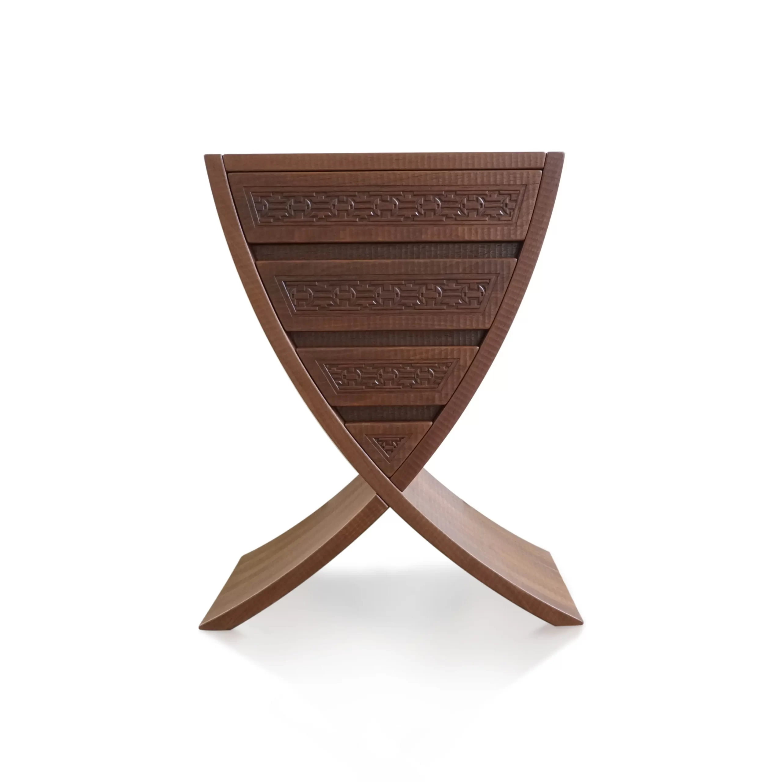 La firma de Artesanos Don Bosco: Escanaladuras talladas a mano en madera, creando un efecto ondulado único.