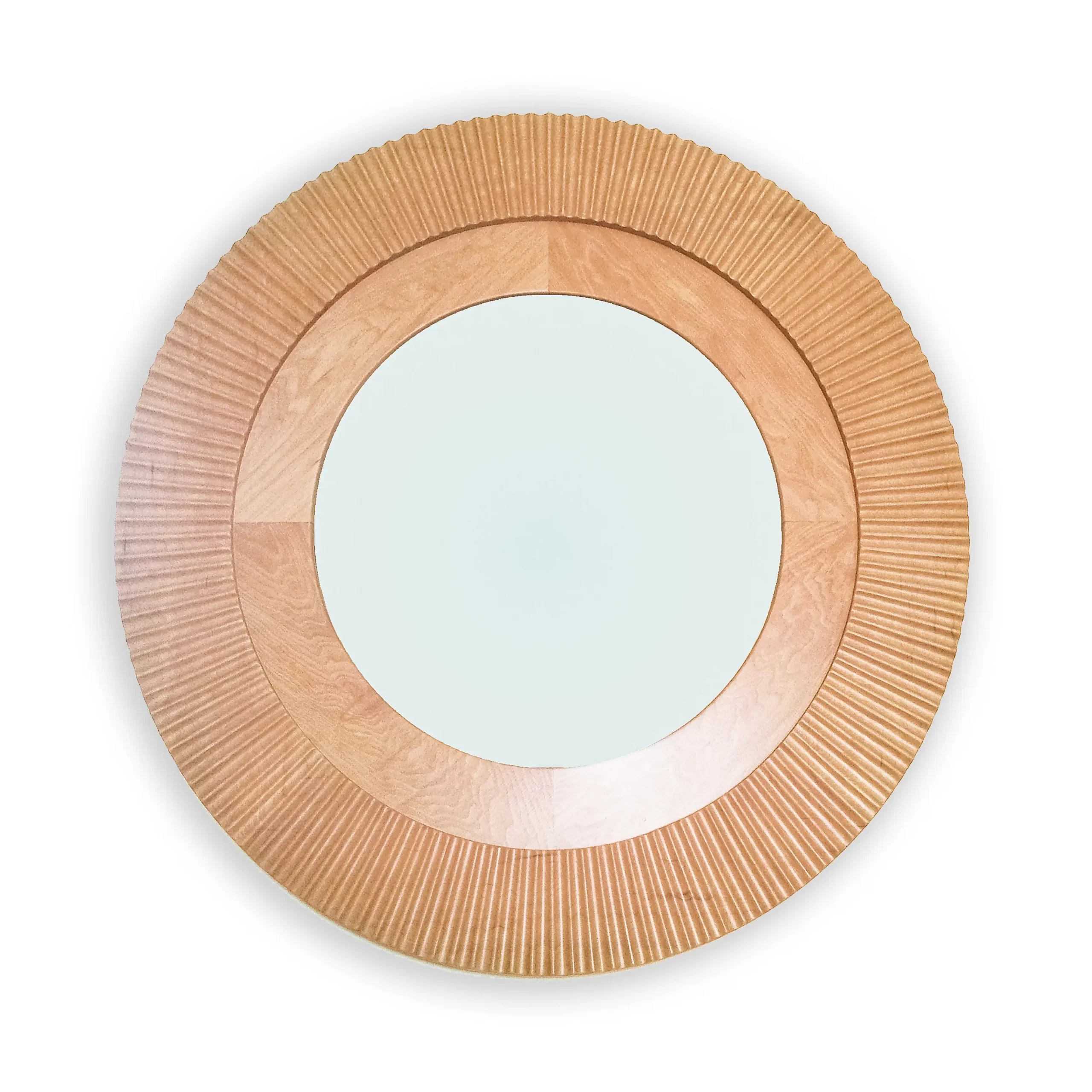 La firma de Artesanos Don Bosco: Escanaladuras talladas a mano en madera, creando un efecto ondulado único.