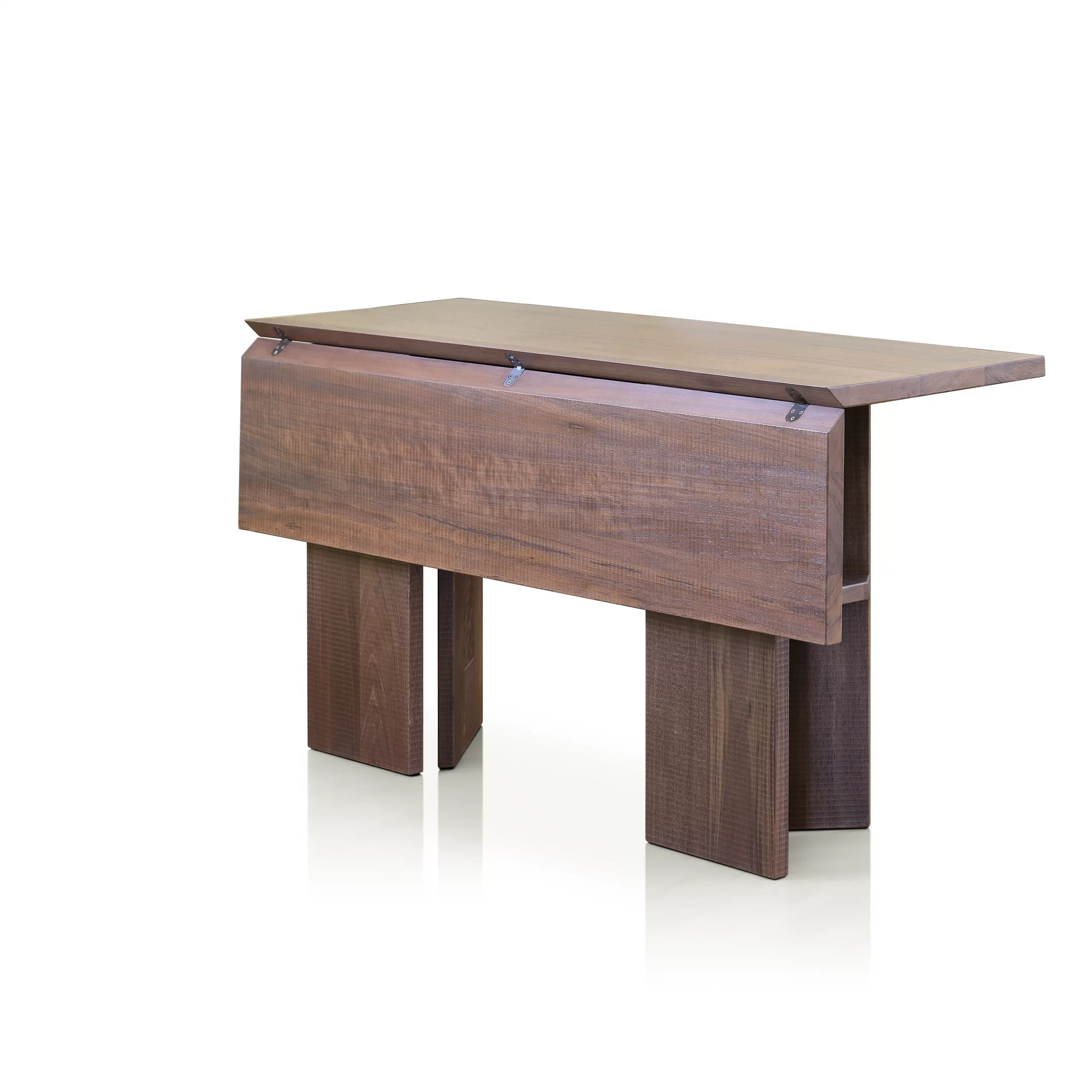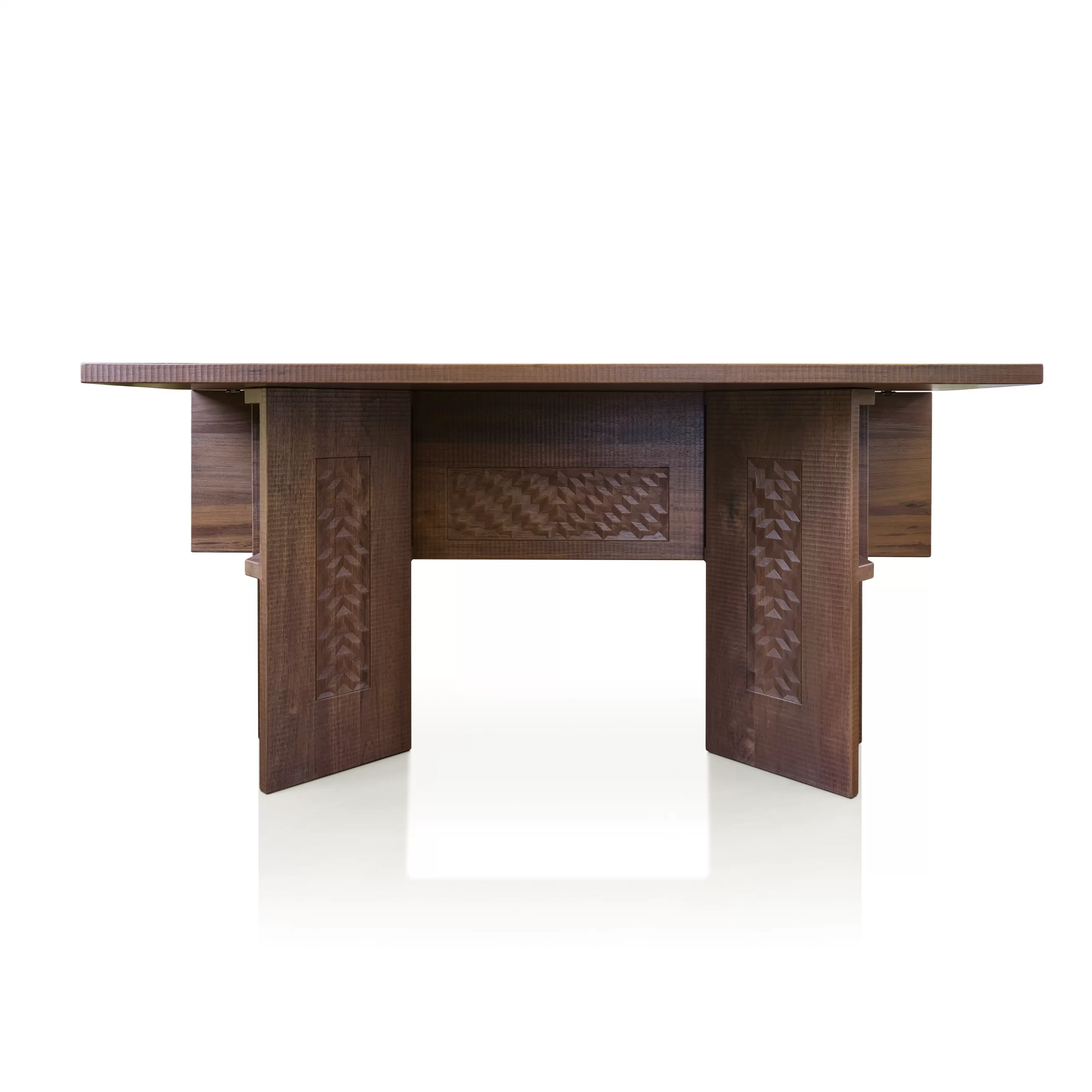 La firma de Artesanos Don Bosco: Escanaladuras talladas a mano en madera, creando un efecto ondulado único.
