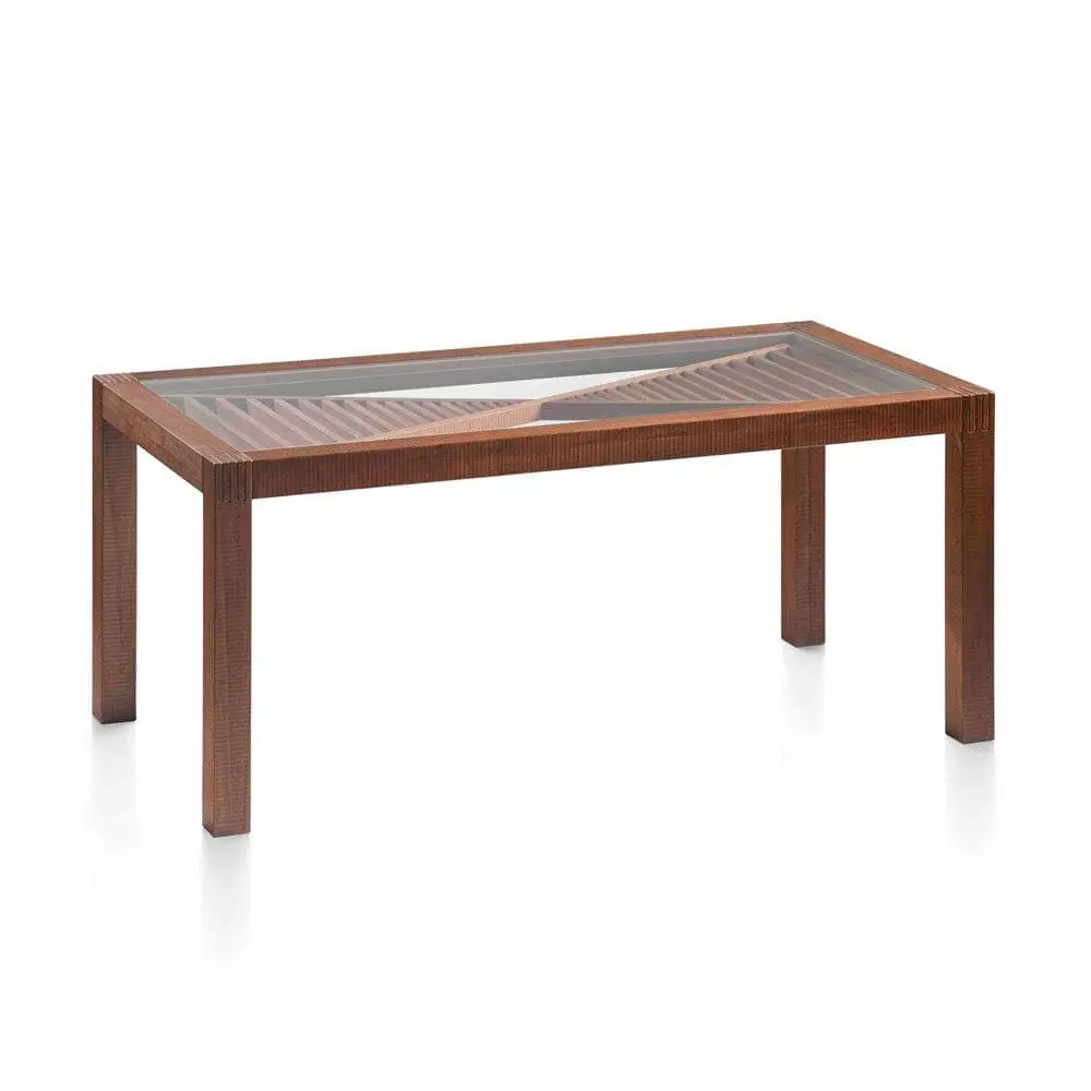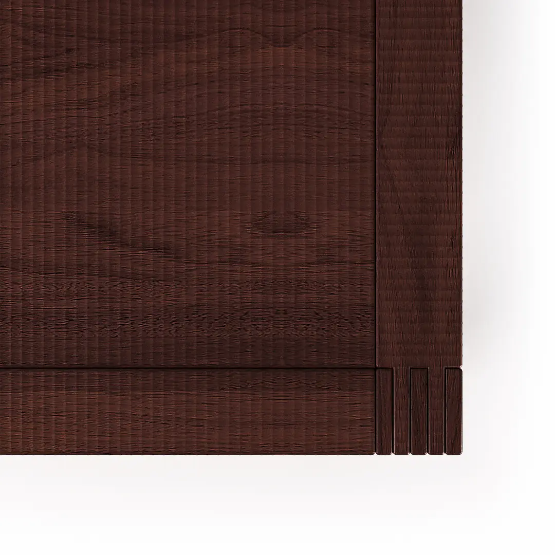 La firma de Artesanos Don Bosco: Escanaladuras talladas a mano en madera, creando un efecto ondulado único.
