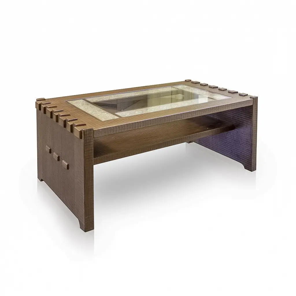 La firma de Artesanos Don Bosco: Escanaladuras talladas a mano en madera, creando un efecto ondulado único.