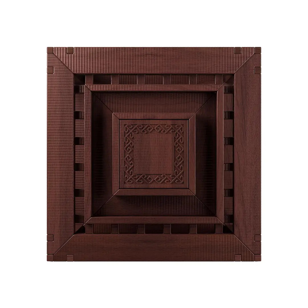 La firma de Artesanos Don Bosco: Escanaladuras talladas a mano en madera, creando un efecto ondulado único.