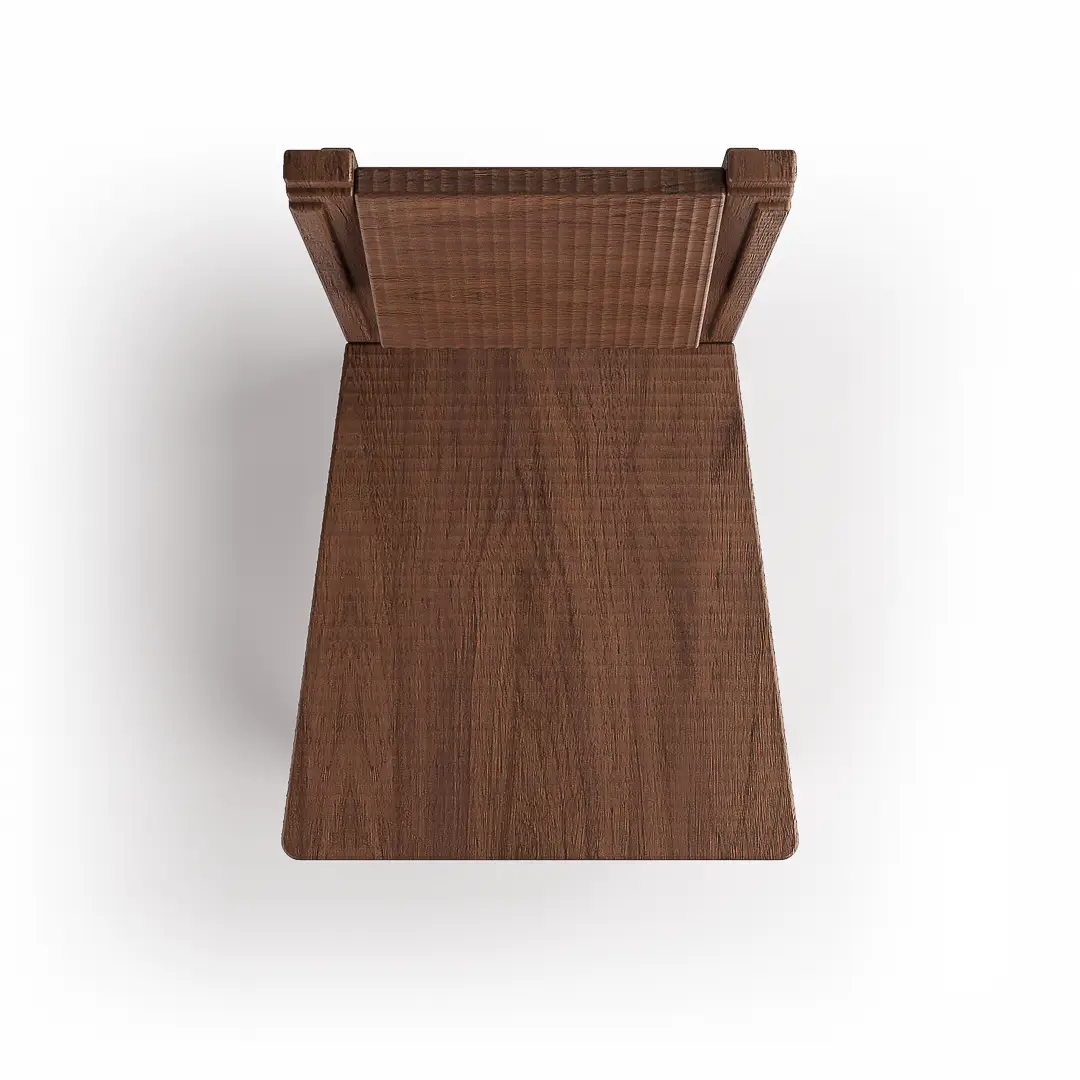 La firma de Artesanos Don Bosco: Escanaladuras talladas a mano en madera, creando un efecto ondulado único.