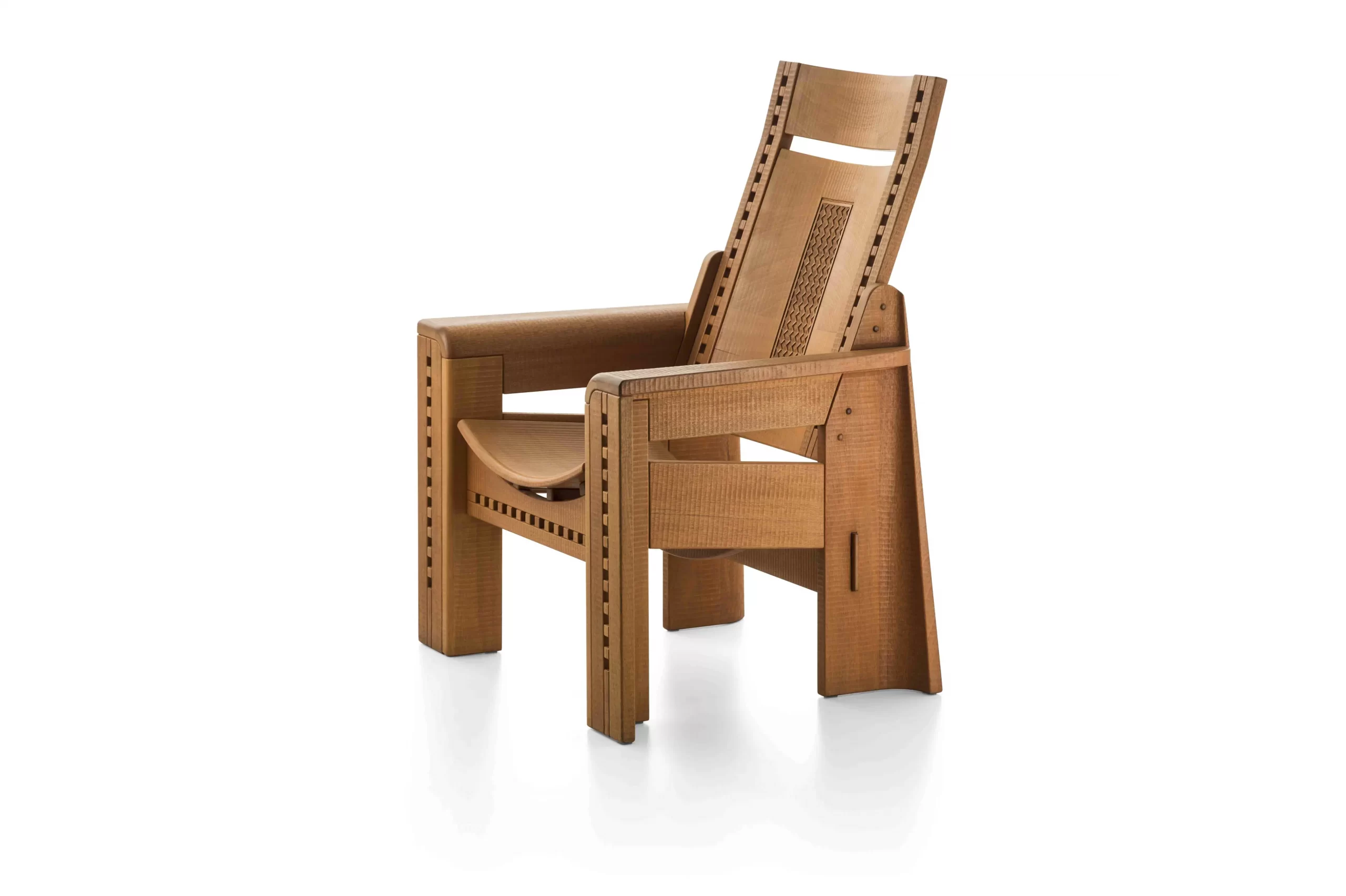 La firma de Artesanos Don Bosco: Escanaladuras talladas a mano en madera, creando un efecto ondulado único.