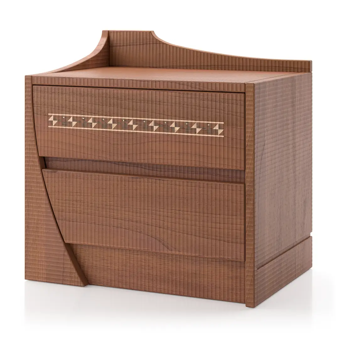 La firma de Artesanos Don Bosco: Escanaladuras talladas a mano en madera, creando un efecto ondulado único.